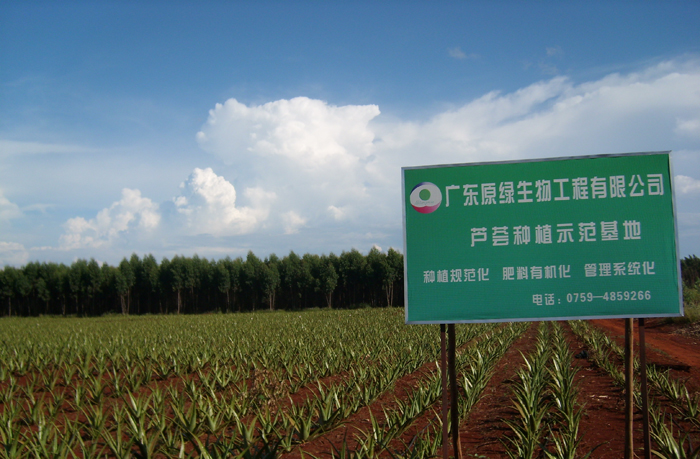 芦荟种植基地是我们向客户提供“优质、绿色、安全、健康、高效”的芦荟系列产品的第一车间。为此,我们按“公司+基地+农户”模式发展现代农业。公司负责示范基地建设,种植标准制定,种植培训指导、产品研究开发、市场开拓和技术服务,引导农户大规模种植芦荟,发展订单农业。农村、农民与企业、市场融为一体,形成多赢共同体。